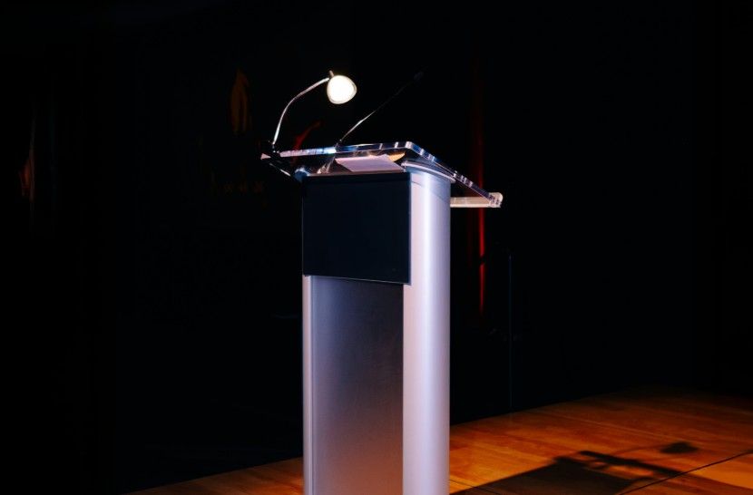 8. Predispone mejor el resto de los elementos del escenario: atril, iluminación, señalización, micros.