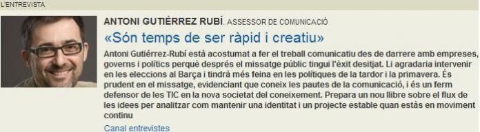 Són temps de ser ràpid i creatiu – Entrevista amb Eduard�Batlle per a El Punt- Not�cies de Girona (12.02.2010) (ver… http://ow.ly/16zaHN