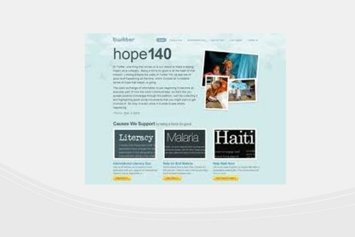 Hope140 es el nombre de la nueva herramienta creada por Twitter para difundir la labor de las ONG. A través de su utilización, se pueden dar a conocer las distintas acciones y campañas que impulsan estas organizaciones que, en forma de mensajes cortos, se difunden rápidamente por la red.