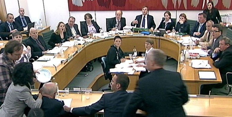 El intento de ‘tartazo’ del que fue víctima el magnate en los pasillos del Parlamento casa también con esta imagen de hombre humillado que Murdoch intenta transmitir. Tanto es así que ha despertado algunas sospechas entre los expertos en comunicación política.