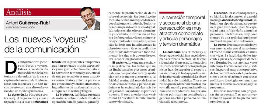 #toulouse punt d vista d'“@antonigr: De informadores y consumidores a voyeurs, de mi artículo hoy en @elperiodico_cas http://t.co/NP9StTc8”