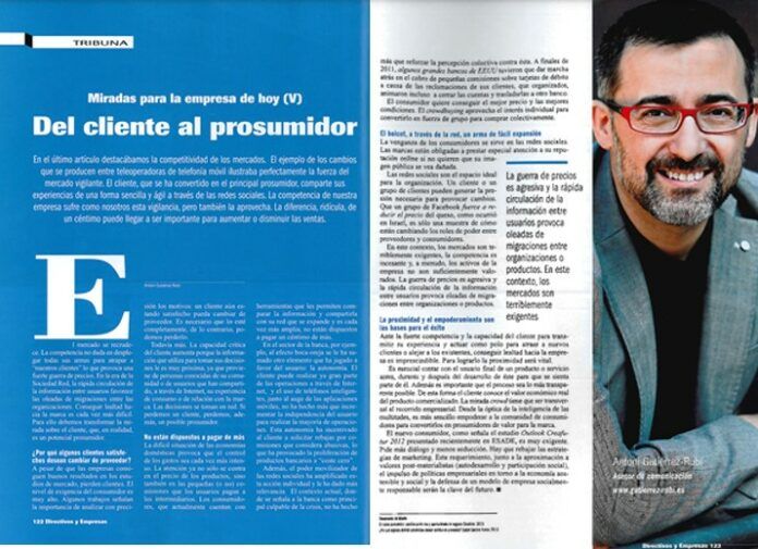 ‘Del cliente al prosumidor’ penúltimo artículo de la serie ‘Miradas para la empresa de hoy’ en @DirectivosyEmpr http://t.co/WtITow39