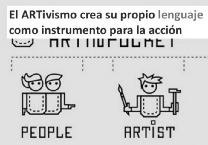 El título de mi intervención es «ARTivismo como parte de la expresión de una nueva política» y se centra en analizar cómo los modelos y los actores tradicionales anclados en viejas fórmulas para la acción política no parecen encajar en la demanda de una ciudadanía organizada en red. Haciendo énfasis en Internet, como un ecosistema que favorece la organización de la acción política desde la base ciudadana ̶ a menudo ̶ desde su vertiente más crítica. Y, donde la creatividad, en este contexto, juega un factor decisivo para empoderar a los afines al movimiento. Por otro lado, las TIC también tienen un papel clave en la forma de comunicarse de estos movimientos de base, utilizando recursos gráficos, visuales… con gran riqueza expresiva.