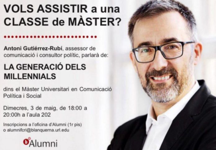 Esta tarde, de 18 a 20h, se llevará a cabo una Open Masterclass, dentro del Máster en Comunicación Política y Social que codirijo, en la que hablaré de ‘La Generación de los Millennials‘.