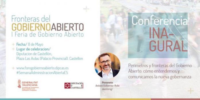 El próximo 8 de mayo la Diputación de Castellón y la Conselleria de Transparencia, Responsabilidad social, participacion y Cooperación de la Generalitat Valenciana pone en marcha Fronteras: I Feria de Gobierno Abierto, en el que tengo el placer de desarrollar la conferencia inaugural bajo el título: Perímetros y fronteras del Gobierno Abierto: cómo entendemos y comunicamos la nueva gobernanza.