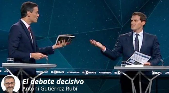 Los primeros minutos fueron explosivos. Rivera tuvo la capacidad de protagonizar el debate con interrupciones eficaces. El debate decisivo coincidió con Sant Jordi. El primer intercambio de libros entre Sánchez y Rivera fue sin rosa, sin lacito, ni dedicatoria. Y amenazaba un debate muy embarrado.
