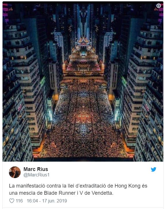 Centenares de miles de residentes de Hong Kong, la mayoría vestidos de negro, abarrotaron las calles de la ex colonia británica, en protesta por la propuesta de ley que permitiría enviar a algunos sospechosos de delitos a la China continental para ser juzgados allí. Las primeras protestas fueron duramente reprimidas por la policía, lo que provocó que estas aumentaran y que saliera a la calle un millón de personas. Todas ellas vestidas de negro, como si estuvieran de luto, logrando un gran impacto en miles y miles de fotografías y vídeos, lanzados a las redes sociales.