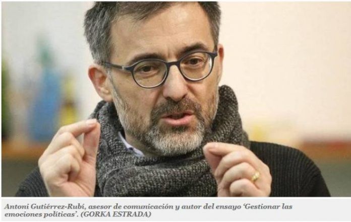 – Es un punto de equilibrio complejo. A mi juicio serían tres cosas las que hay que hacer frente a las emociones. Primero: conocer más cómo funciona nuestro cerebro, entender que acabamos pensando lo que sentimos, conocer más de neurociencia. Reconocer más que en el fondo nuestra racionalidad también depende profundamente de nuestra emotividad. Me parece que en general hay un déficit de conocimiento sobre cómo funciona el cerebro y la construcción de opiniones. Hay un cierto desprecio, y se desprecia lo que se ignora. Segundo: me da la sensación de que desconocemos el potencial de las emociones para gestionar una mejor comunicación y praxis política, para que sea efectiva, comprendida, aceptada y reconocida. Utilizar las emociones, en el mejor sentido del verbo, para introducir elementos de revitalización de la política. Y tercero: estar más atentos a la evolución de las emociones . La gente vive con estados de ánimo muy sobreexcitados y muy conectados. La conectividad permanente hace que un estado personal rápidamente puede encontrar una comunidad de personas que comparten las mismas cosas o comparten las mismas preocupaciones. Y eso va a obligar a la política a tener un radar más fino ante la evolución de las emociones. Creo que si se hacen bien estas cosas, la política tiene una oportunidad de reconectarse con la ciudadanía y superar esa brecha que hay en estos momentos de confianza y credibilidad.