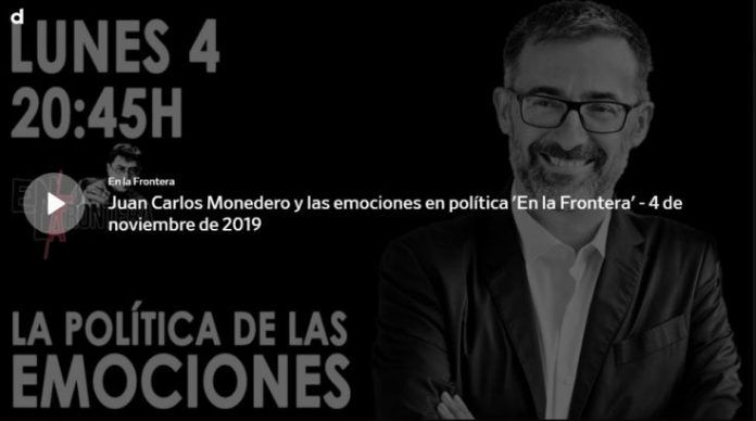 Comparto la entrevista con Juan Carlos Monedero (@MonederoJC), en su programa ‘En La Frontera’ (@enlafronteratv) de Público, que se emitió el pasado lunes, 4 de noviembre, y que tuvo lugar tras la presentación de mi último libro: Gestionar las emociones políticas. Podéis verla en este enlace, desde el minuto 03′:45″. Algunas ideas sobre las que hemos conversado, entre muchas otras: