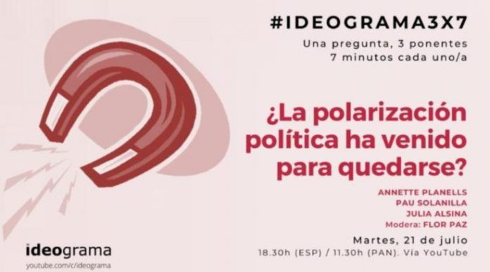 El próximo martes, 21 de julio, tendrá lugar un nuevo encuentro #IDEOGRAMA3X7. En esta ocasión, la pregunta planteada es: ¿La polarización política ha venido para quedarse?
