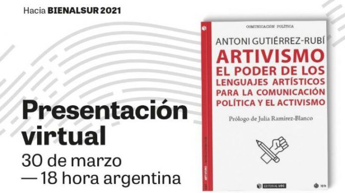 El martes, 30 de marzo, a las 18h. (Argentina) participo en los diálogos online organizados por BIENALSUR, presentando mi nuevo libro: «ARTivismo. El poder de los lenguajes artísticos para la comunicación política y el activismo» (Editorial UOC).