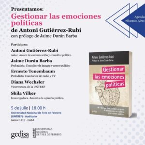 En octubre de 2019 veía la luz mi libro: Gestionar las emociones políticas, de la mano de Gedisa Editorial (@GedisaEditorial), dentro de la colección 360º Claves contemporáneas, #MásCulturaPolítica, cuyos editores fueron Cristina Monge (@tinamonge) y Jorge Urdánoz (@Jurdanoz).