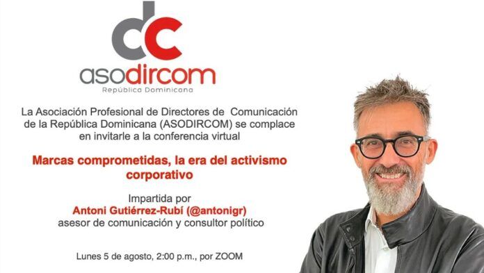 El próximo lunes 5 de agosto tengo el placer de desarrollar una conferencia virtual organizada por la Asociación Profesional de Directores de Comunicación de la República Dominicana (ASODIRCOM) con el título: Marcas comprometidas, la era del activismo corporativo.