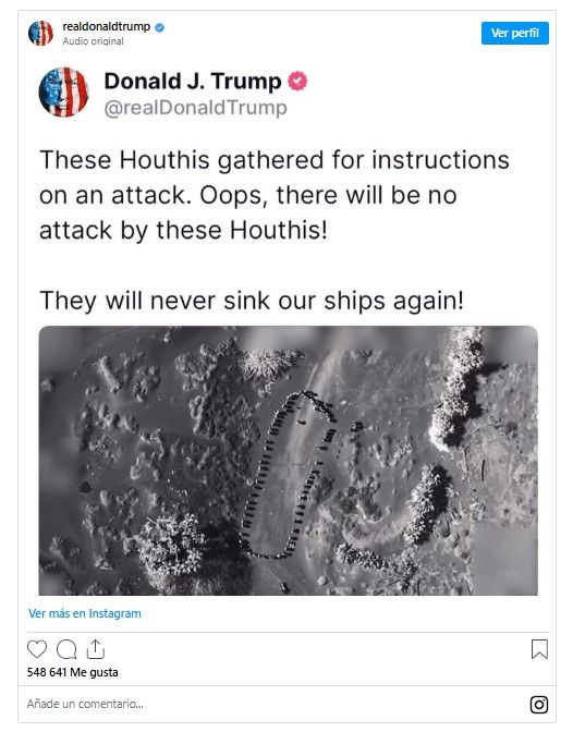 La comunicación de la Casa Blanca, del Departamento de Defensa (o Guerra) y del mismo Trump hace un especial énfasis en mostrar fuerza y capacidad de someter al enemigo mediante el uso de la violencia, lo cual es considerado un motivo de orgullo. Desde que comenzó su segundo periodo, el mandatario ha publicado en Instagram al menos 39 posts en los que se le ve con fuerzas militares o policiales, o se destaca su trabajo. Eso es alrededor de una publicación cada ocho días. Cinco de esos contenidos son vídeos reales de ataques de fuerzas militares estadounidenses a enemigos.